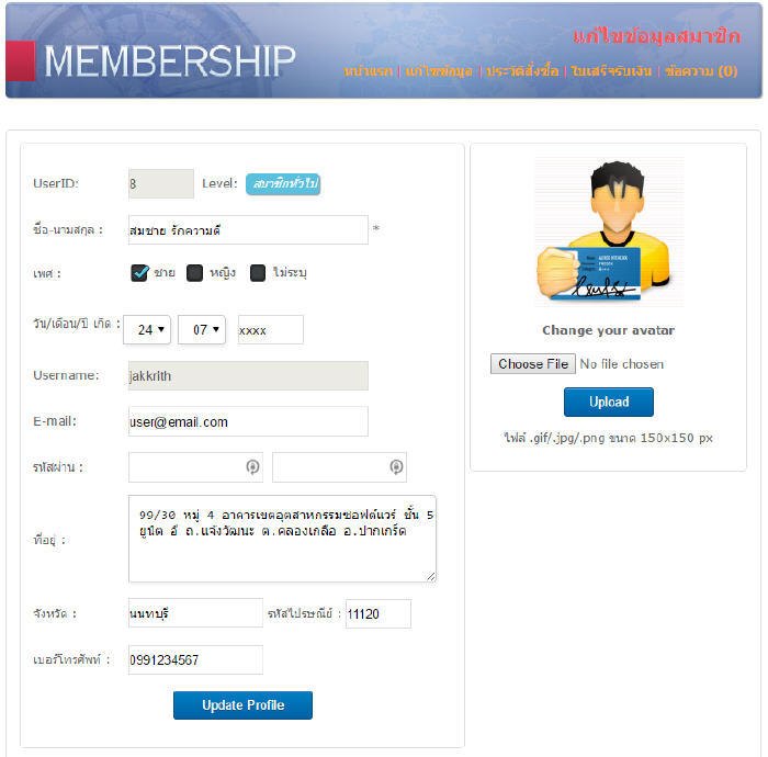 2. แบบฟอร์มแก้ไขข้อมูลสมาชิก
