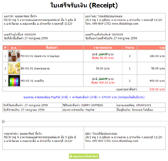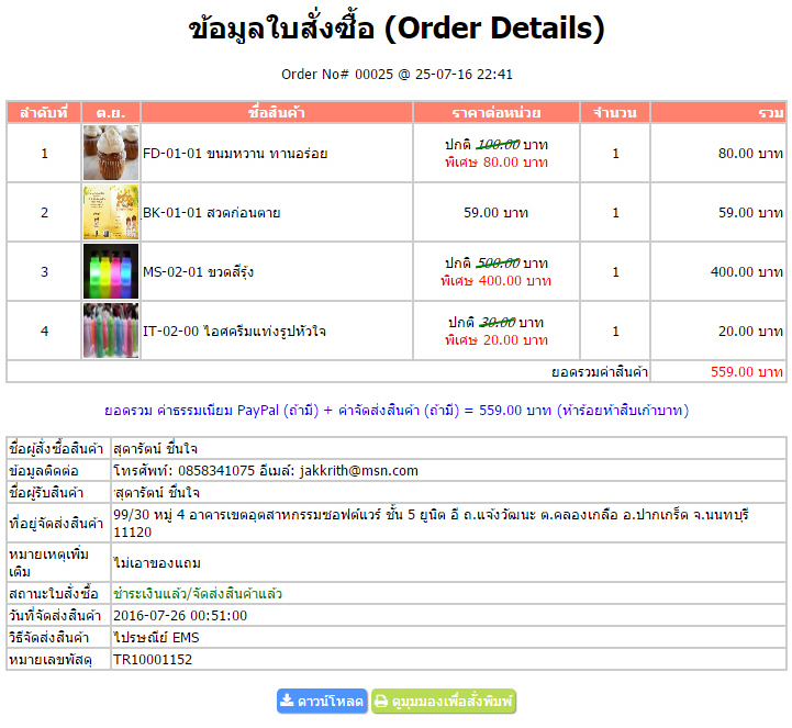 4. หน้าแสดงรายละเอียดใบสั่งซื้อสินค้า