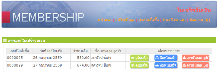 5. หน้าแสดงใบเสร็จรับเงิน