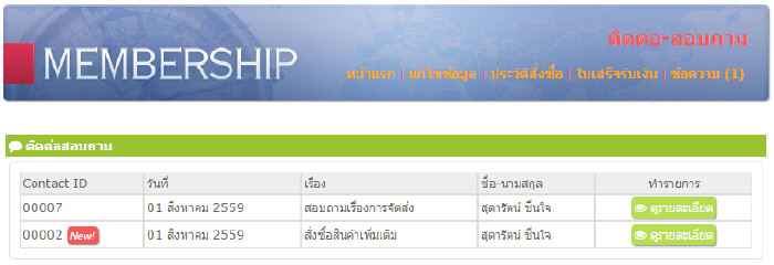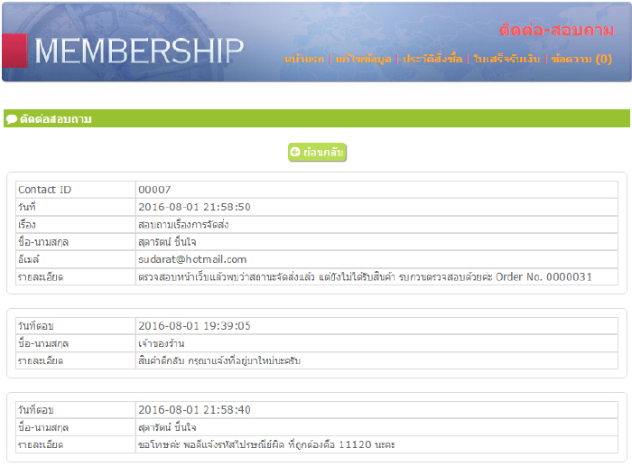 7. หน้าแสดงรายการติดต่อสอบถาม (ข้อความ)